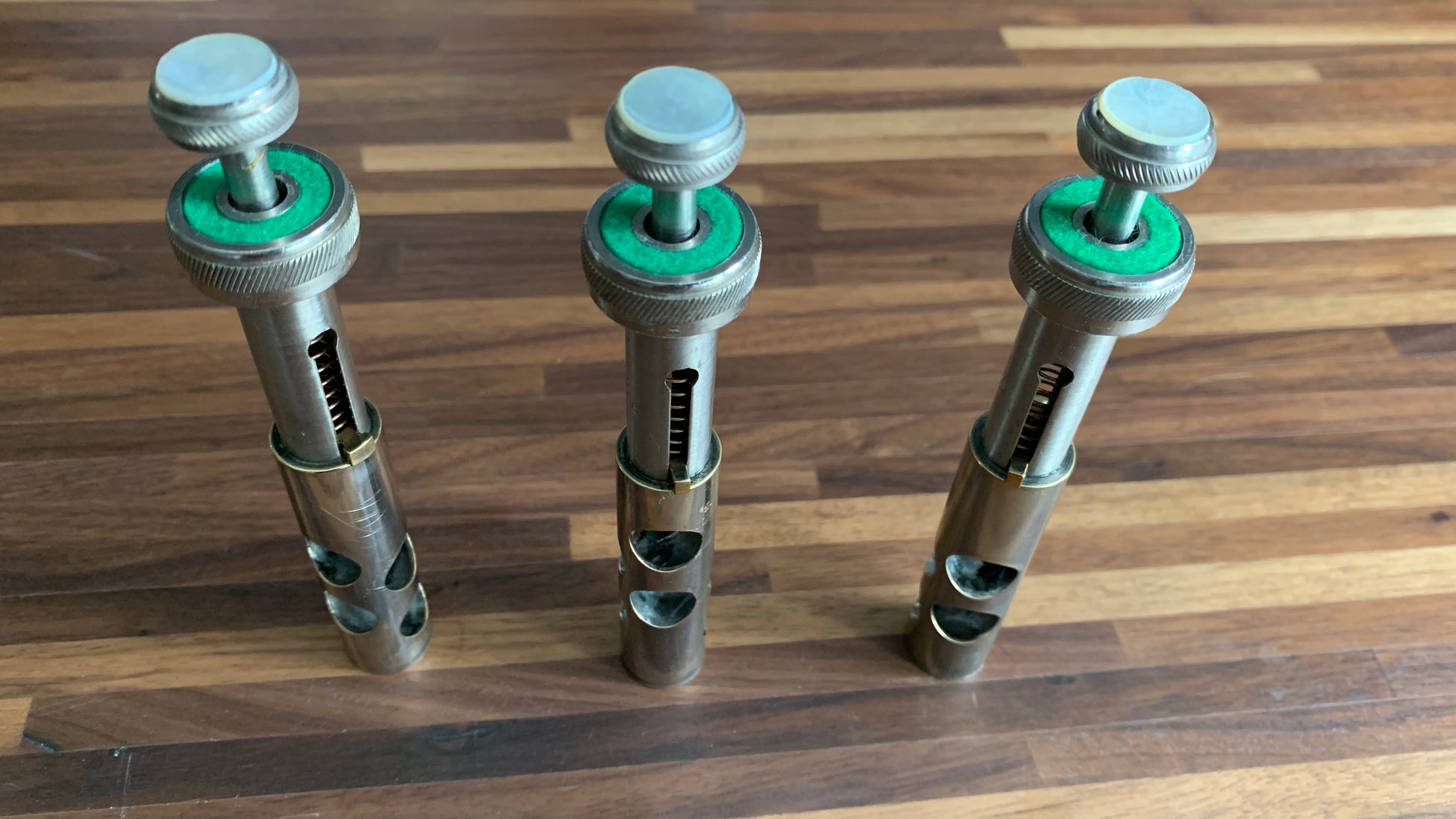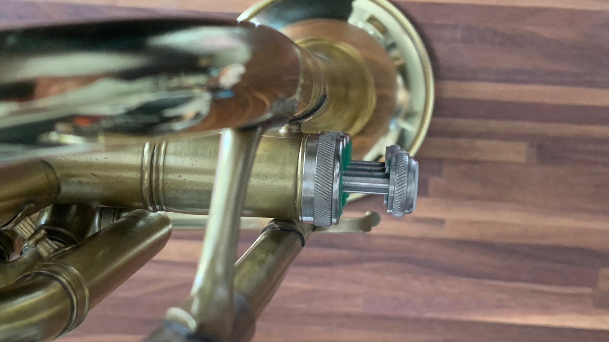 Vernis brillant refait. Les coulisses fonctionnent bien et la compression est vraiment très forte. Le cornet projette bien et les pistons sont fluides.